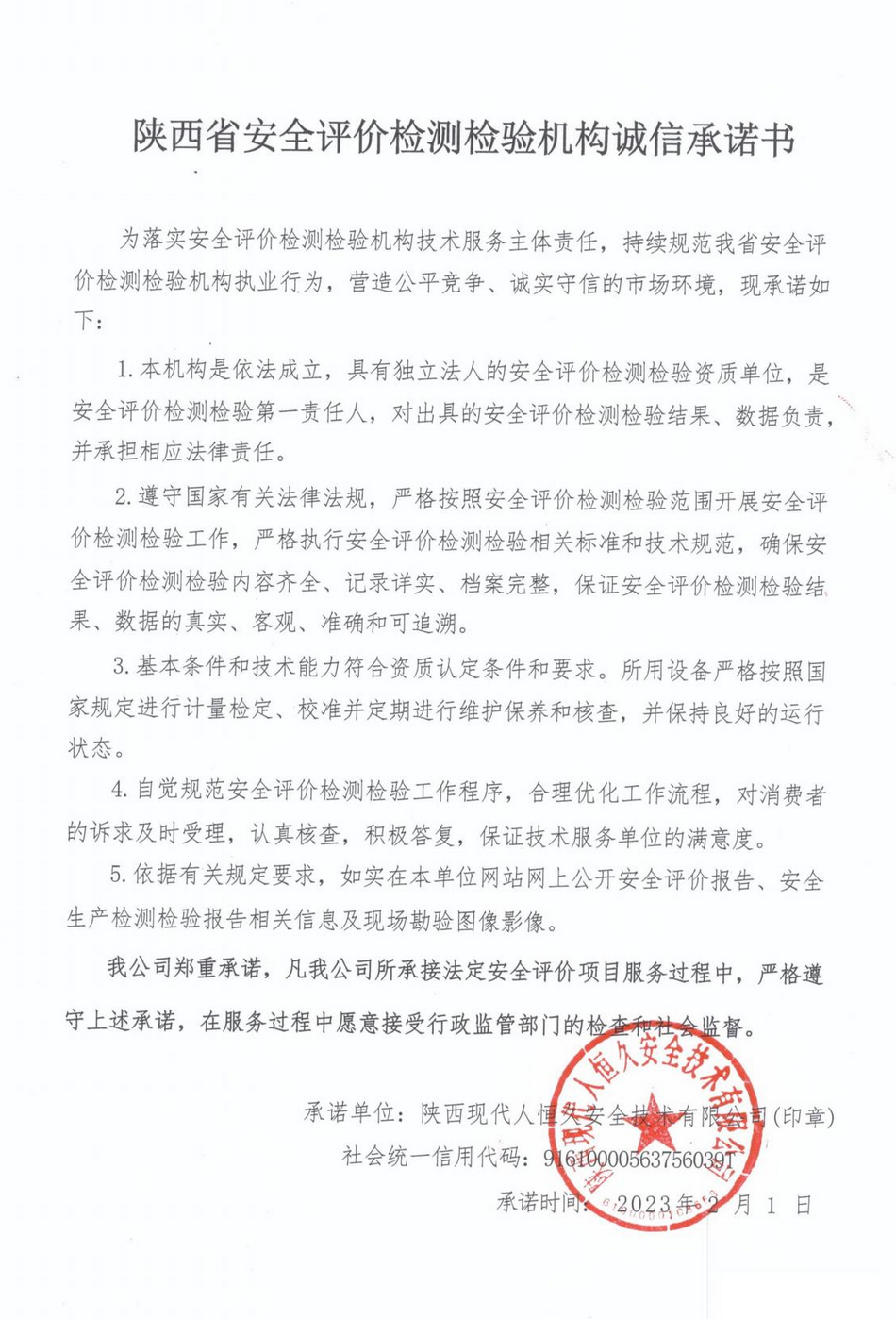 / 陕西省安全评价检测检验机构诚信承诺书
