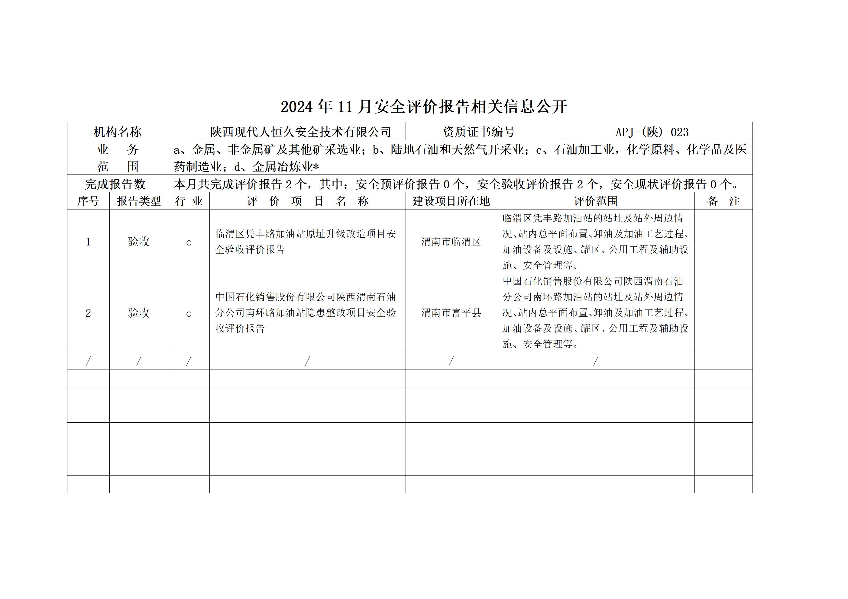 2024年11月安全评价报告相关信息公开