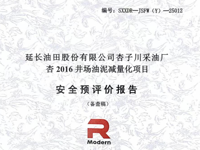 延长油田股份有限公司杏子川采油厂杏2016井场油泥减量化项目安全预评价报告