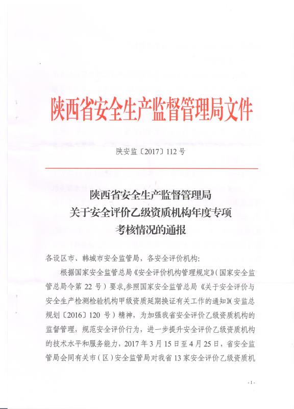 陕西省安全生产监督管理局文件
