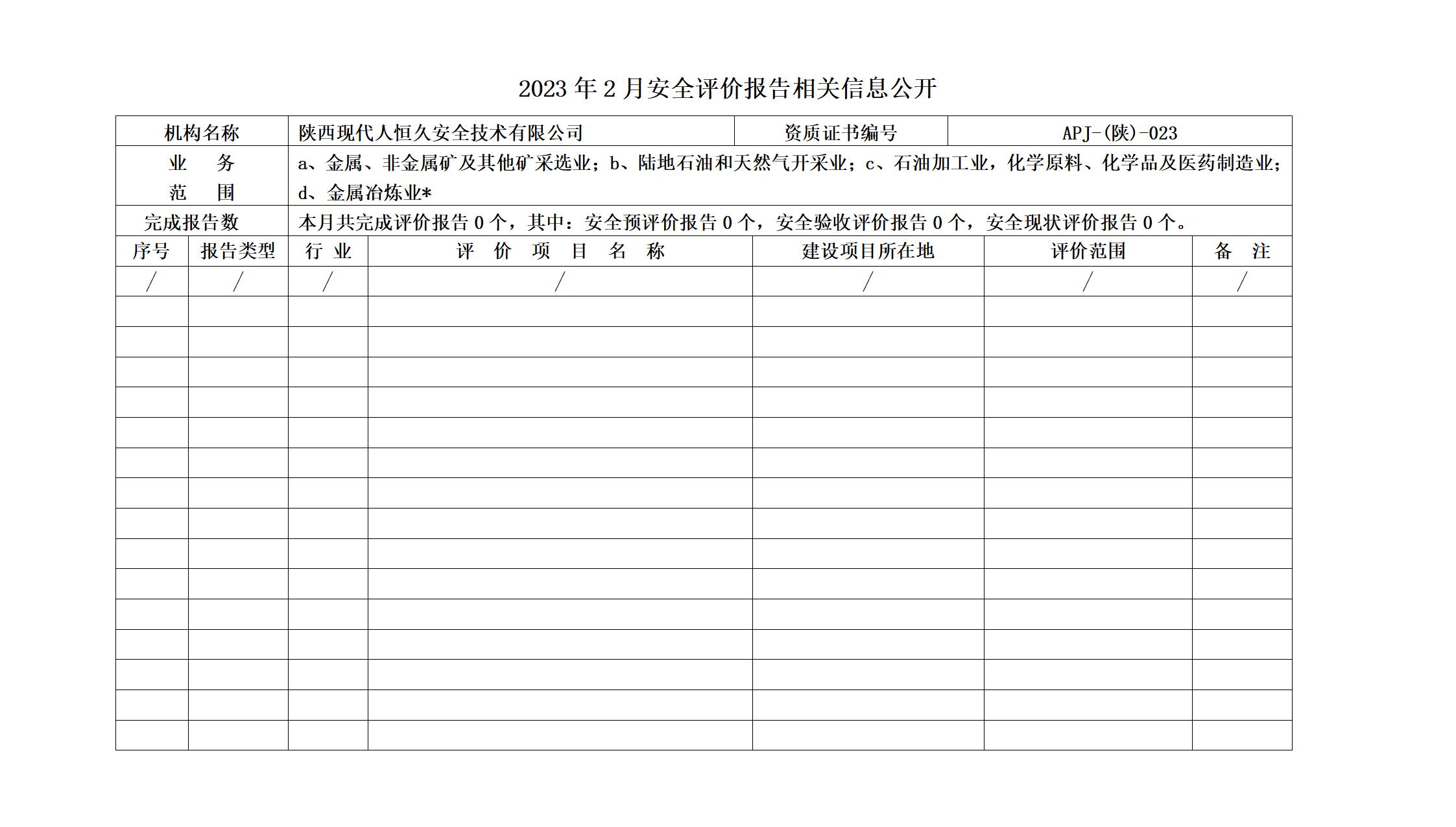 2023年2月安全评价报告相关信息公开