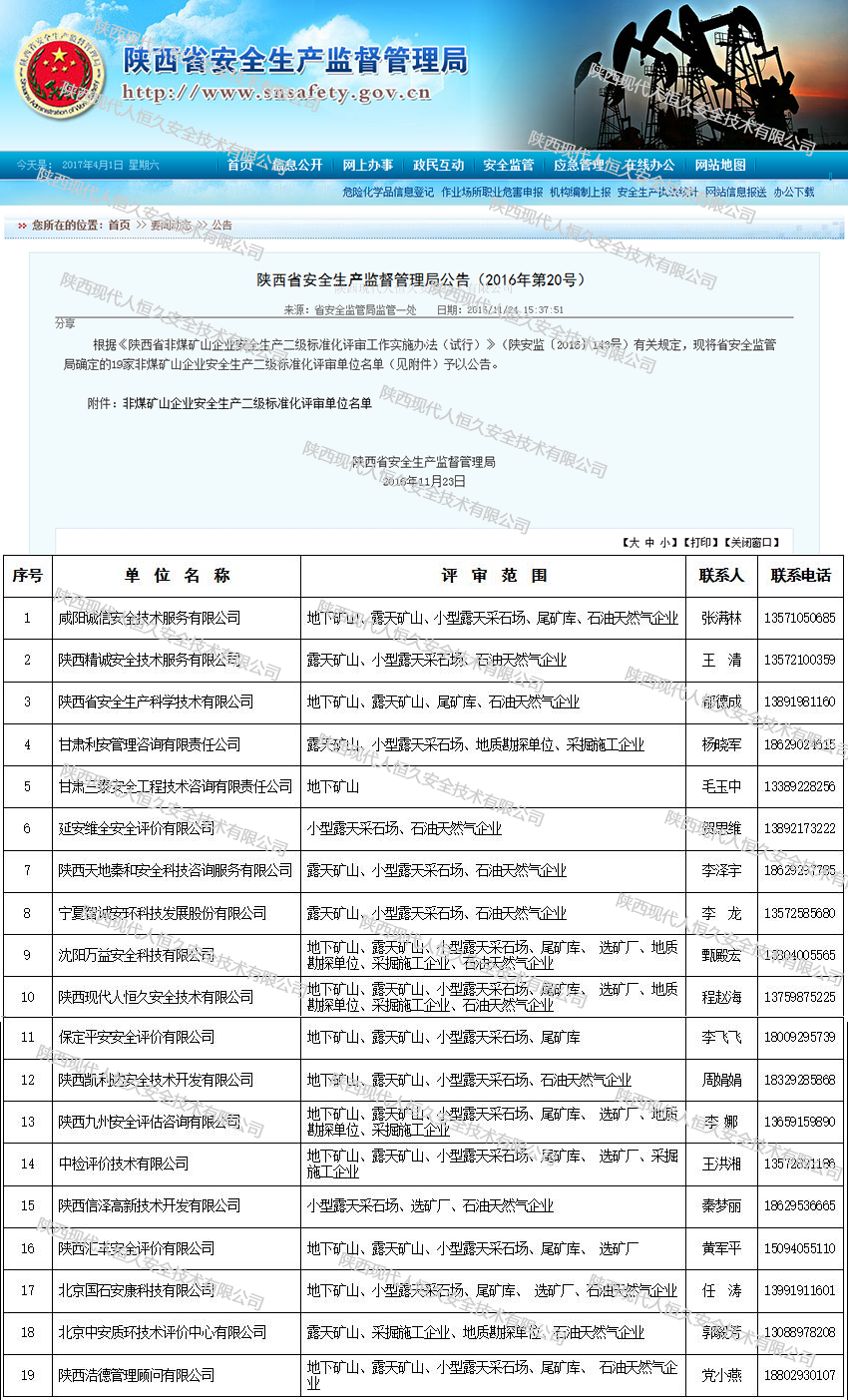 陕西省安全生产监督管理局公告