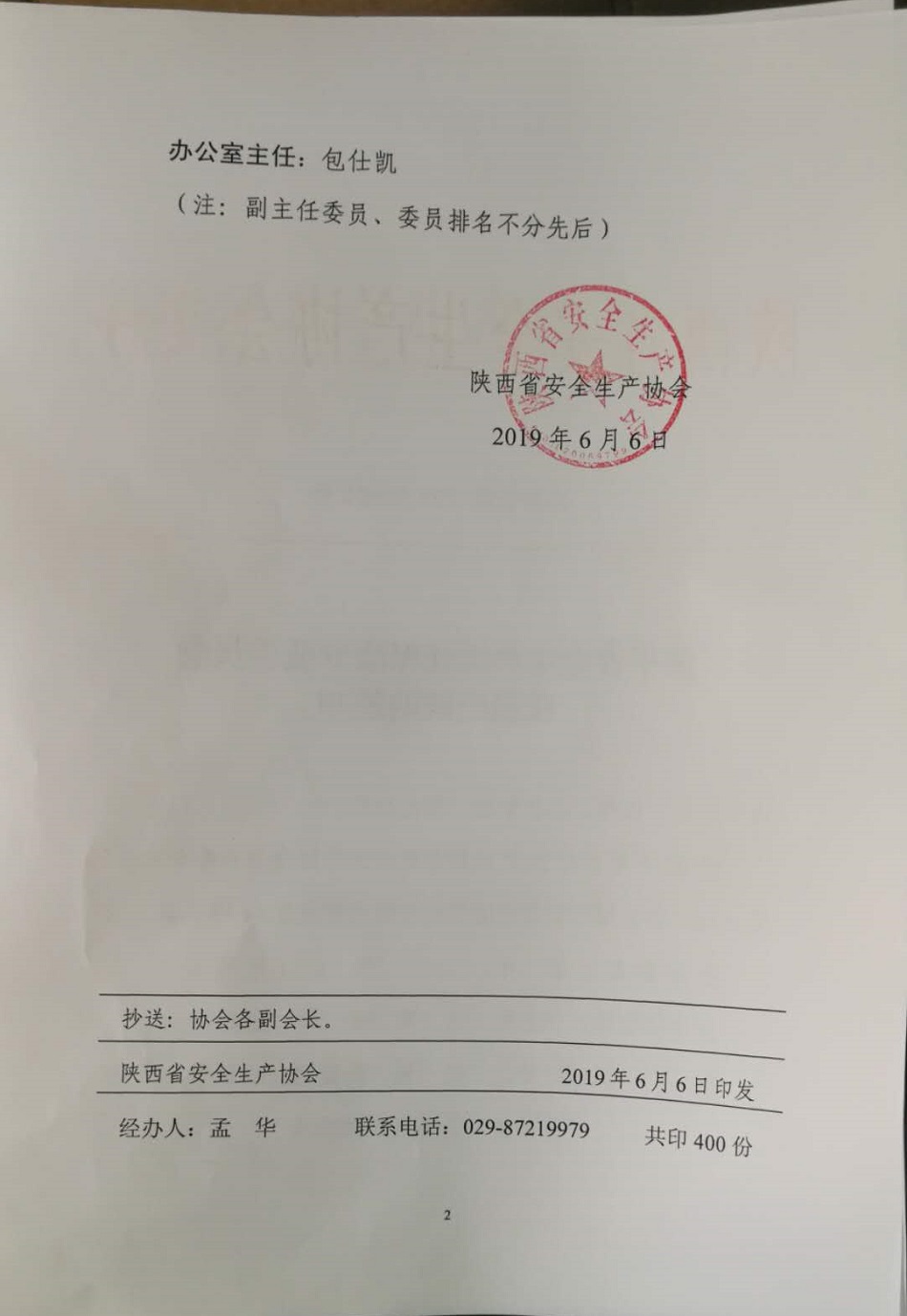 根据陕安协发[2019]21号文《关于安全生产责任保险专业委员会成员组成的通知